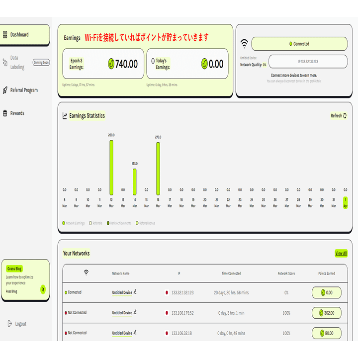 Grassと似たようなPC系マイニングのNode payを載せておきますので、時間があるときにご覧ください。